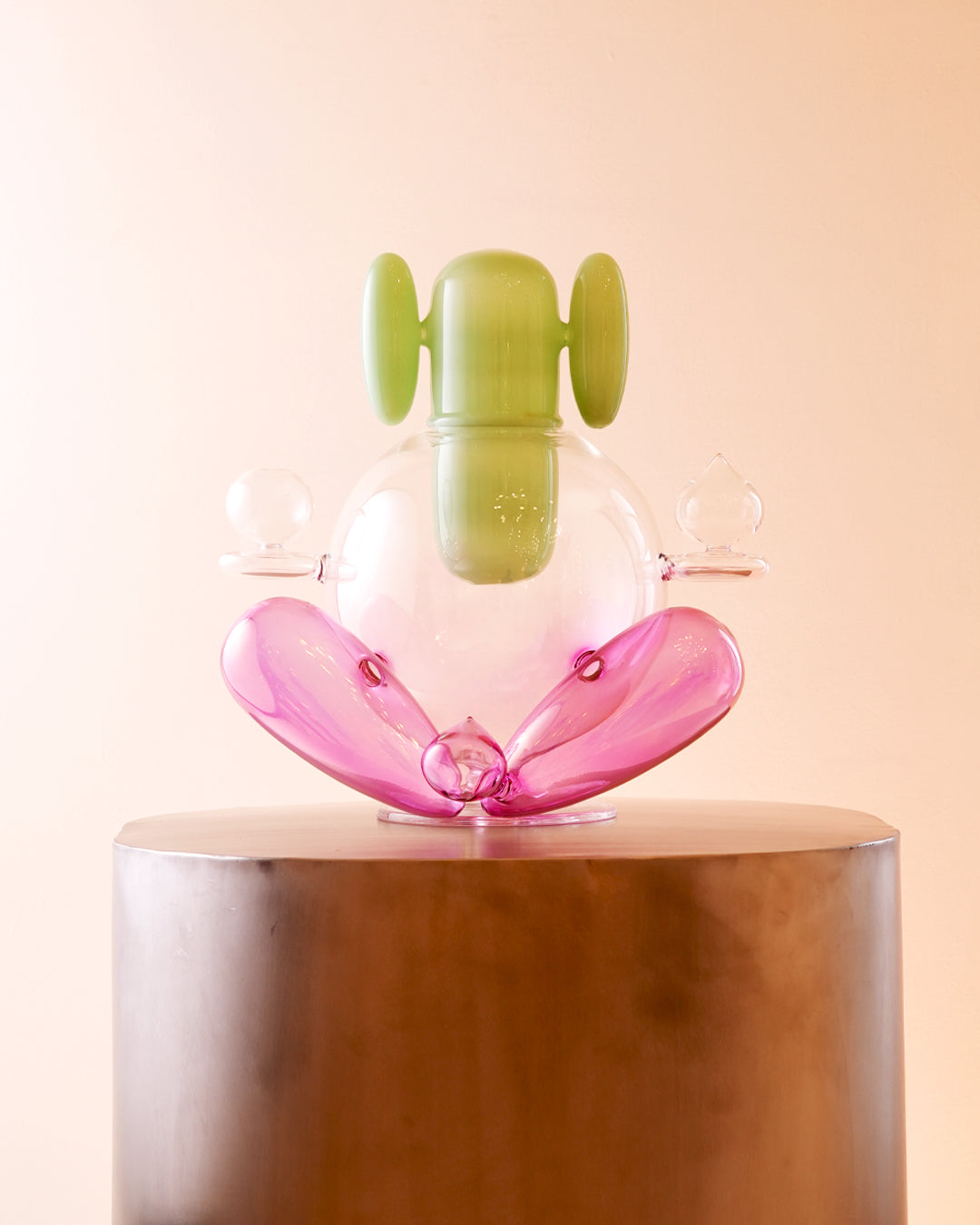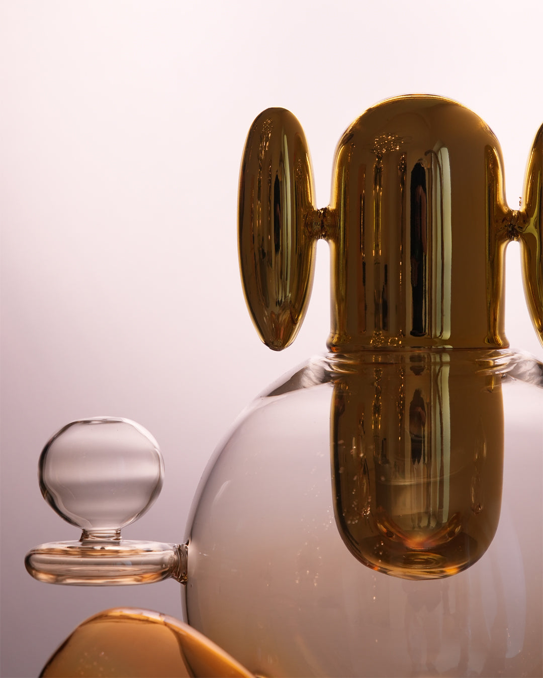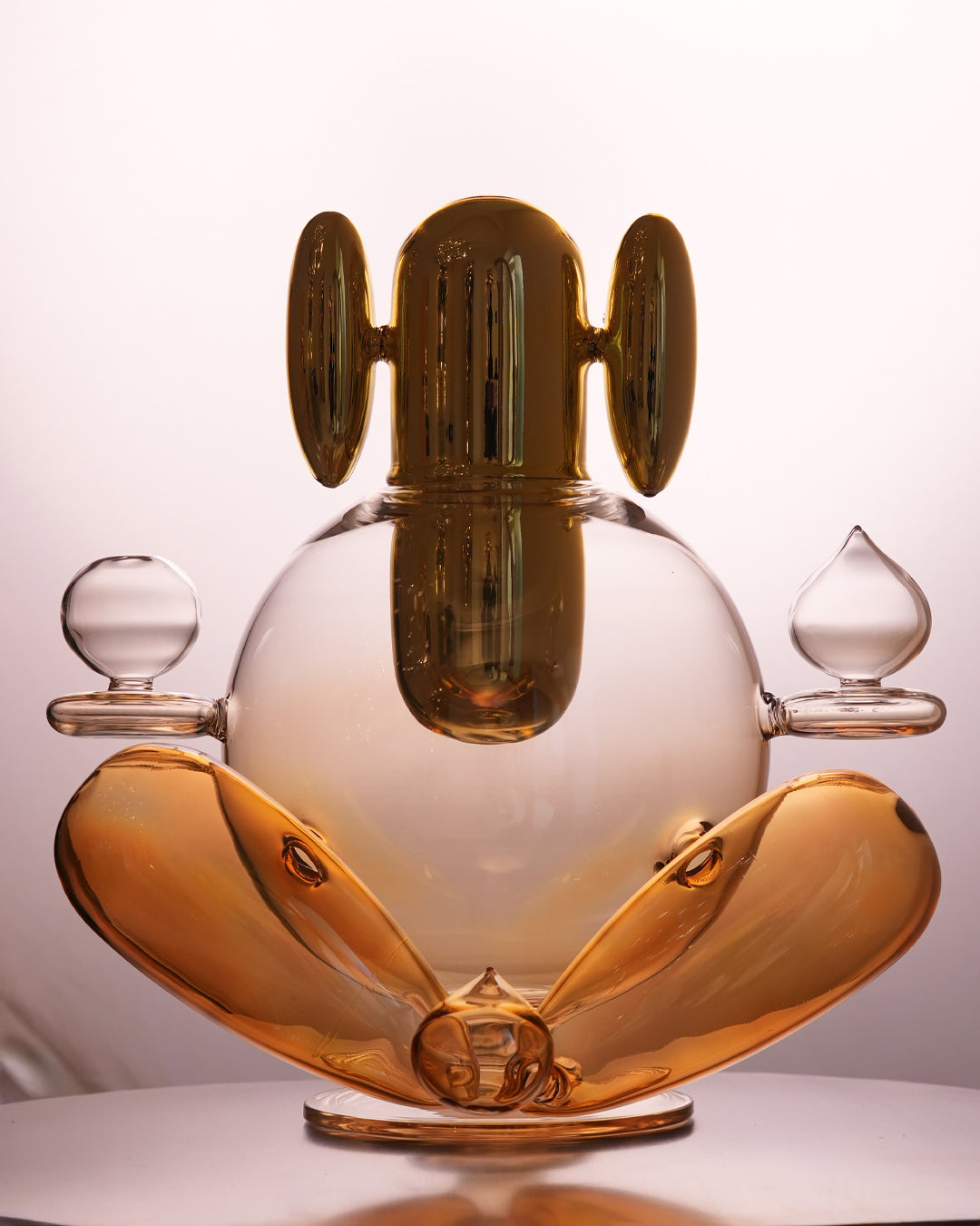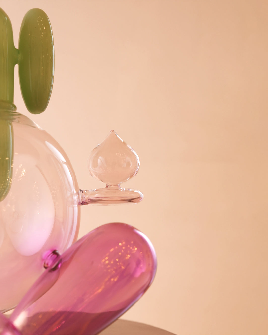 The 'Ganesh Sculpture,' a radiant homage to the guardian of obstacles and bestower of knowledge and success. Meticulously crafted in tinted blown glass, this masterpiece boasts a simplified and contemporary silhouette, harmonizing simplicity with profound symbolism. The contemporary design, comprised of elegant and uncomplicated shapes, adds a touch of modern sophistication to any space.